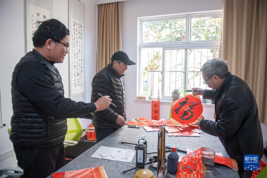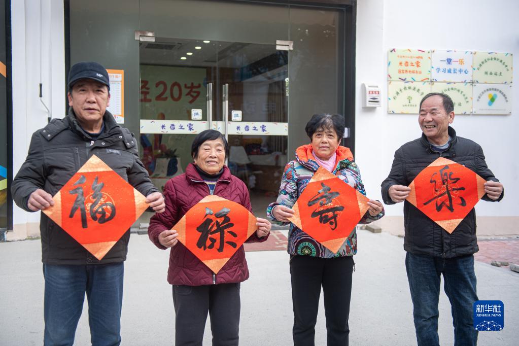 1月18日,江北區(qū)桃源小區(qū)的居民在“長(zhǎng)者之家”寫(xiě)“福”字。該小區(qū)老年人居住比例較高,在老舊小區(qū)改造過(guò)程中,街道將小區(qū)內(nèi)閑置用房改造成集老年大學(xué)、幼兒托管等為一體的“長(zhǎng)者之家”。新華社記者 江漢 攝