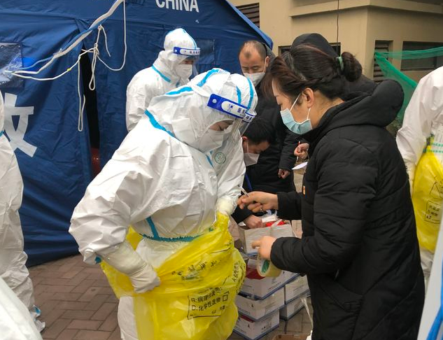 分試管、發(fā)棉簽、配酒精……為醫(yī)護人員與志愿者配齊裝備之后,她又奔波到其他點位,查漏補缺,確保采樣工作順利進行。采樣結(jié)束后,醫(yī)護人員和志愿者已經(jīng)撤離,她總是最后離開。