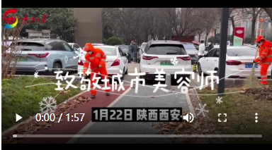 1月22日下午,在西安市經(jīng)開區(qū)鳳城四路、鳳城五路,記者見到了多位工作中的環(huán)衛(wèi)工人,他們來自西安經(jīng)發(fā)保潔有限公司。