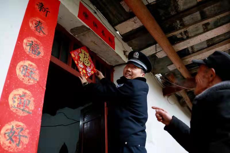 今年得知張有學的兒子、兒媳由于疫情原因可能不回家過年,家里就兩位80多歲的老人和孫女在家。在1月25日小年這天,王鵬提前給老人準備好了年貨,帶著民警來張有學家?guī)兔?。在張有學家里,王鵬和老人搭伙貼好了新年對聯(lián)、幫老人整理好柴火,所里的年輕民警也主動和小慧姐妹溝通學習情況,為她們的學習加油鼓勁。