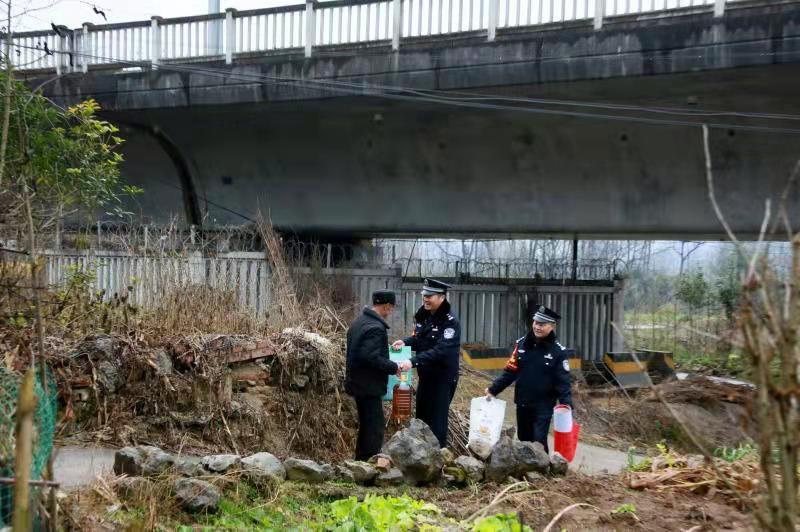 “說起來,這個親戚還是西成高鐵為我們牽的線。”在聊天中王鵬這樣說。原來,2016年12月西成高鐵開通前,為做好高鐵線路的調(diào)研和治安管控工作,安康鐵路警方組建了4支高鐵工作隊開展前期工作,王鵬被選派到寧強南站工作隊擔任隊長。在工作中,他得知離高鐵線不遠的寧強縣薛家壩村有位76歲的張有學老人,老人的兒子兒媳常年在廣東打工,他和老伴獨自照顧2個正上小學的孫女,每天接送2個孫女上下學都會路過高鐵橋下面的小路。由于張有學的家正好位于西成高鐵的落地區(qū)段附近,周邊經(jīng)常有孩童玩耍,治安防控任務艱巨。王鵬帶著民警經(jīng)常到張有學家走訪,還邀請張有學協(xié)助進行安全宣傳。一來二去,雙方結成了“親戚”。每次路過,張有學會邀請著民警到家喝水、吃飯,王鵬也盡力幫著老人做些家務,輔導張有學孫女小慧姐妹倆的功課,這一幫就是6年。
