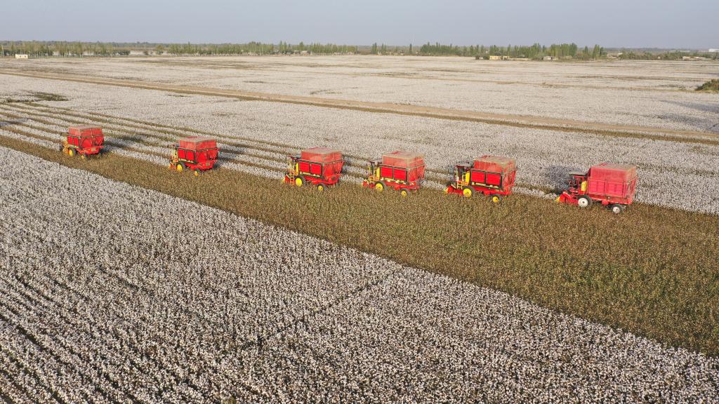 沙雅縣棉田里的采棉機(jī)。(受訪者供圖)