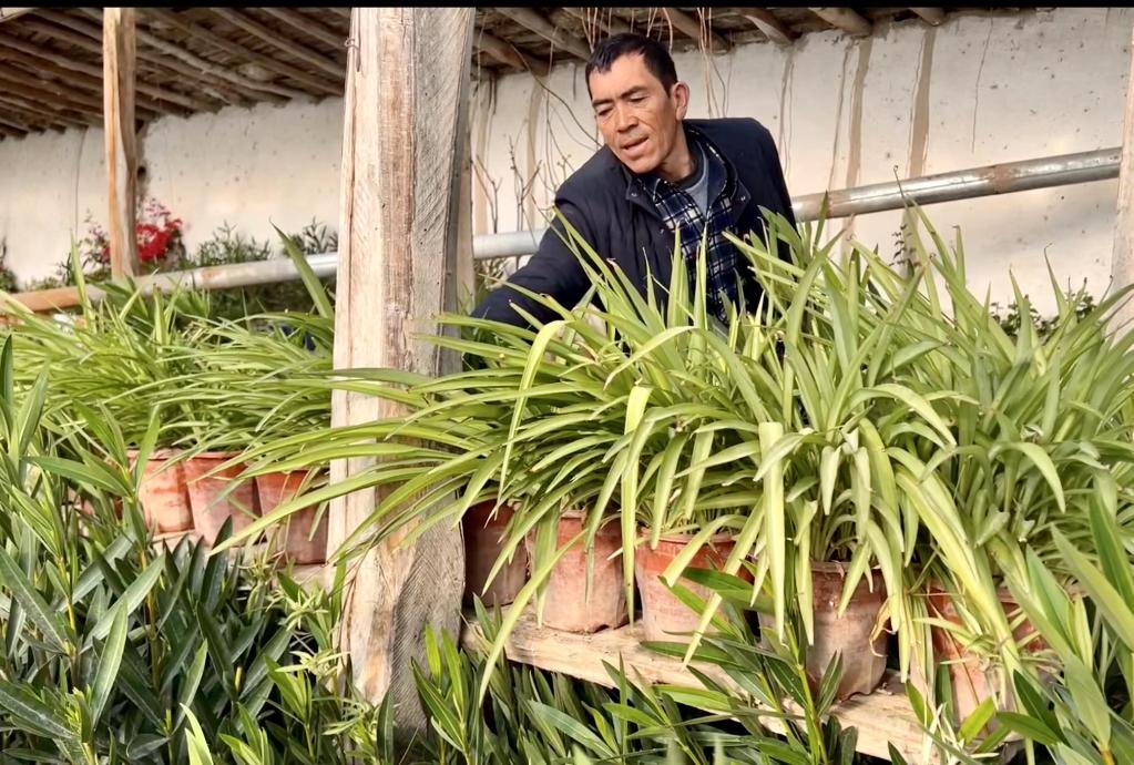 寒冬臘月,室外氣溫達(dá)零下10多攝氏度,奧圖拉庫勒達(dá)西村農(nóng)民艾力·艾合買提家前院450平方米的大棚里,卻是春意盎然,20多種花卉苗生機(jī)勃勃。“現(xiàn)在南疆農(nóng)村老百姓很喜歡買花擺在家里,像這種艾德萊斯花、每日春、蘆葦花,賣得特別好。”他告訴記者,今年打算繼續(xù)擴(kuò)大花卉品種。