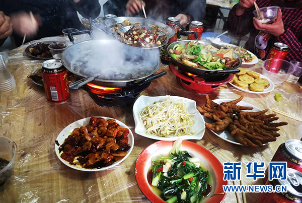 2月7日,當(dāng)?shù)剞r(nóng)歷虎年的第一場(chǎng)壩壩宴。新華網(wǎng)發(fā)(譚俊 攝)