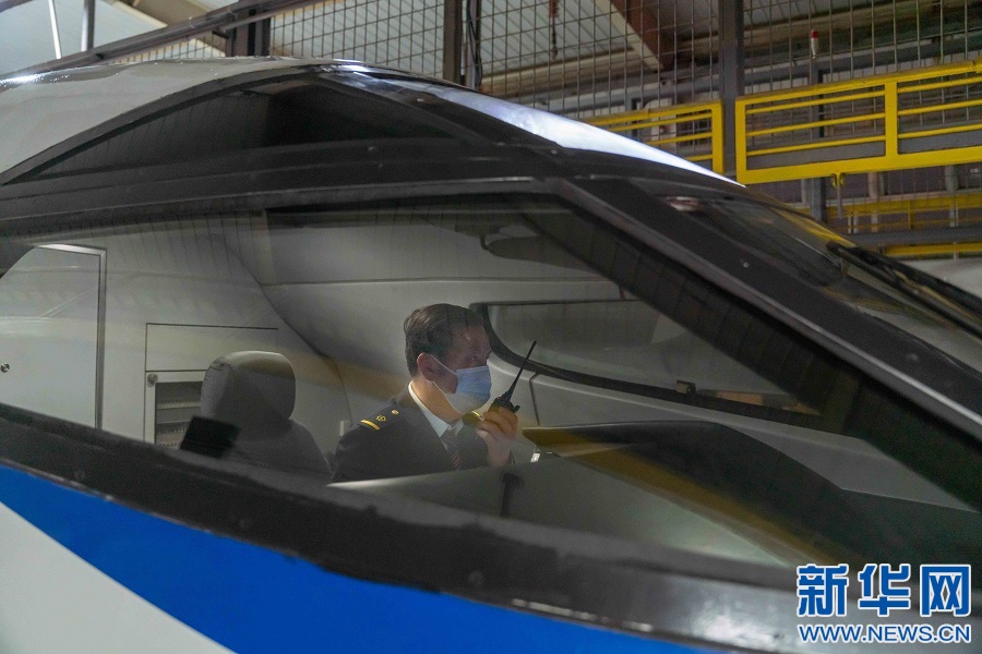 蘇盛正在駕駛列車。新華網(wǎng)發(fā) 趙磊 攝