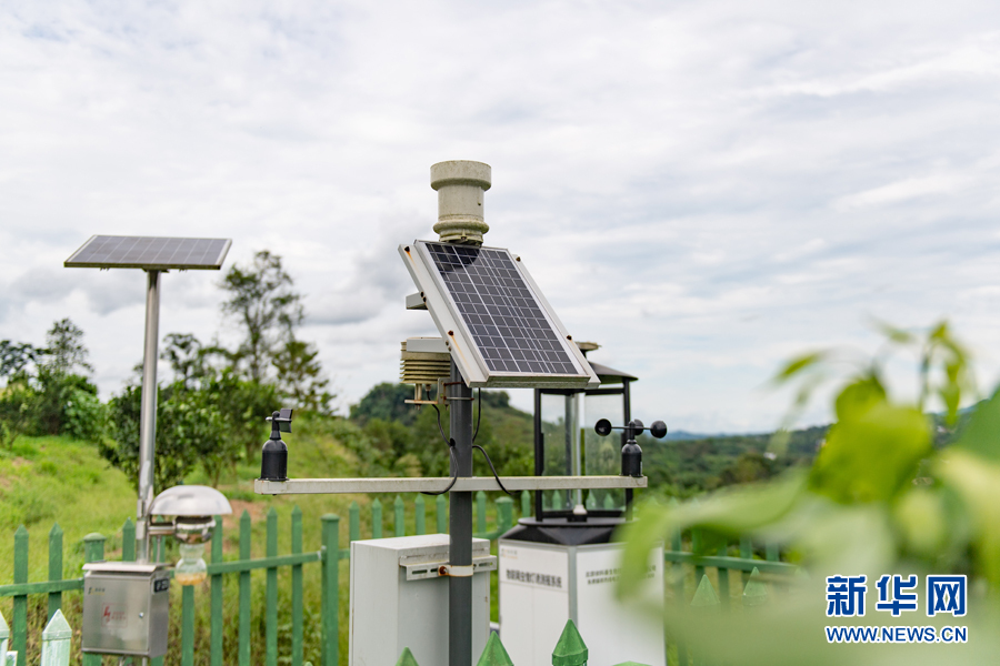 圖為青龍村數(shù)字化無人果園內(nèi)的“小氣候監(jiān)測站”。新華網(wǎng) 耿駿宇 攝
