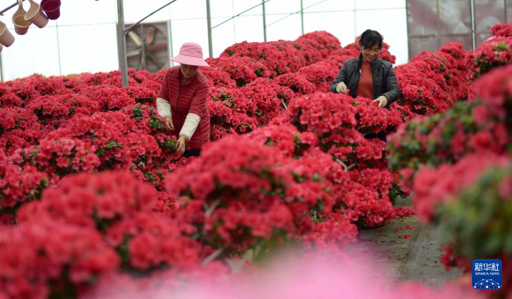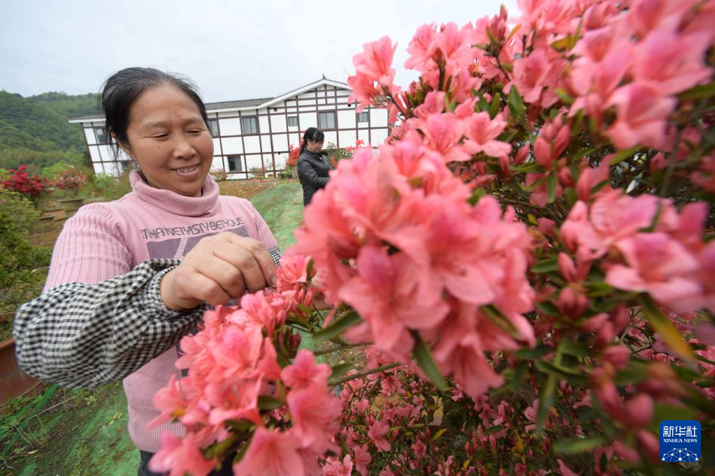 4月18日,村民在桐梓縣婁山關(guān)街道杉坪村黔北花海景區(qū)杜鵑花種植基地勞作。