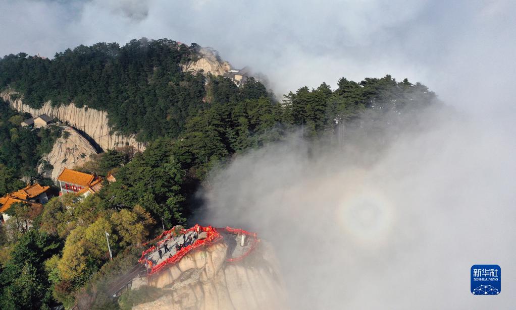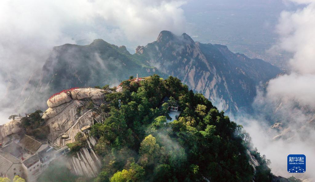 云霧縹緲的華山西峰(4月28日攝,無(wú)人機(jī)照片)。新華社發(fā)(楊瑞卿 攝)