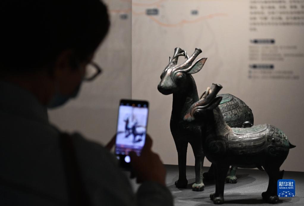 4月28日,游客在陜西考古博物館內參觀寶雞石鼓山商周墓地出土的犧尊。新華社記者 李一博 攝