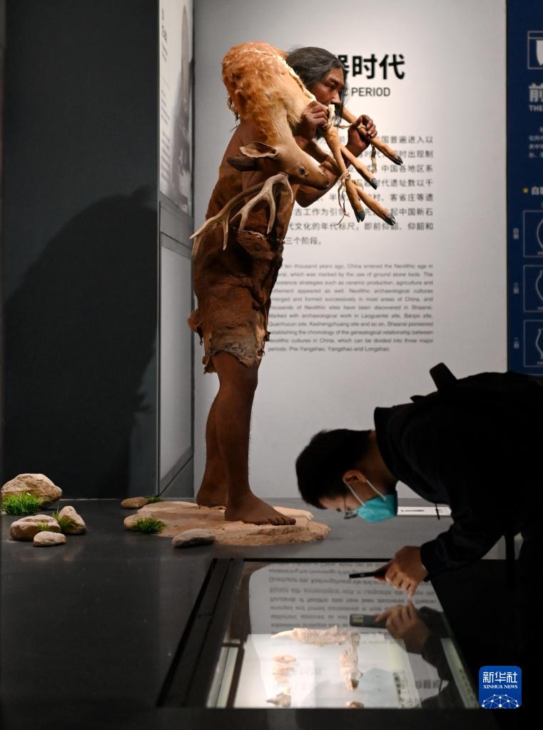 4月28日,游客在陜西考古博物館內了解植物考古知識。新華社記者 李一博 攝