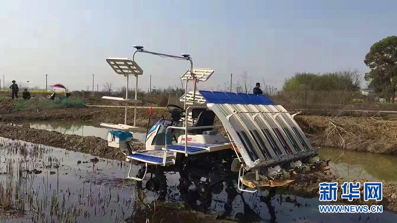 圖為無人自動插秧機(jī)。新華網(wǎng)發(fā) 陳振亮攝