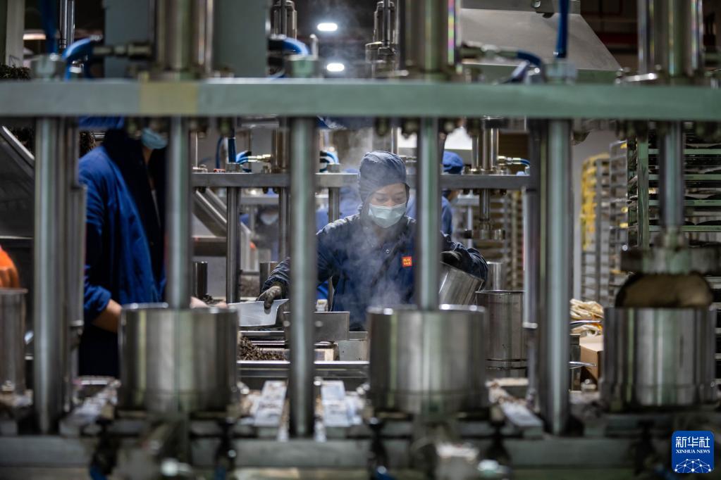 工人在西雙版納傣族自治州勐海縣雨林古茶坊茶葉有限責(zé)任公司的生產(chǎn)線上制作普洱茶(5月10日攝)。新華社記者江文耀攝