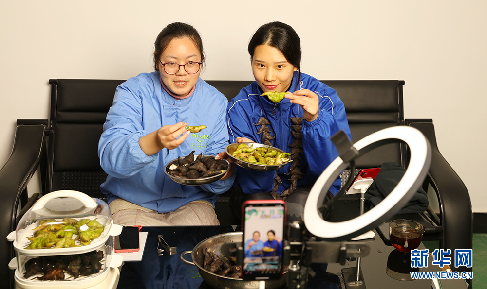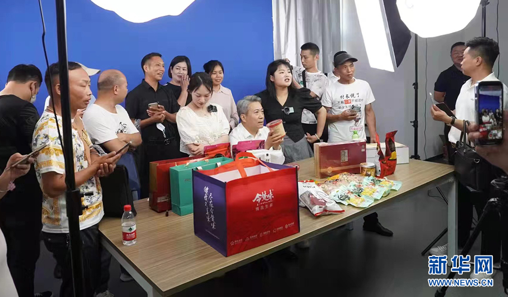 圖為黃岡麻城市“網(wǎng)紅”主播直播帶貨助農(nóng)銷(xiāo)售。新華網(wǎng)發(fā)