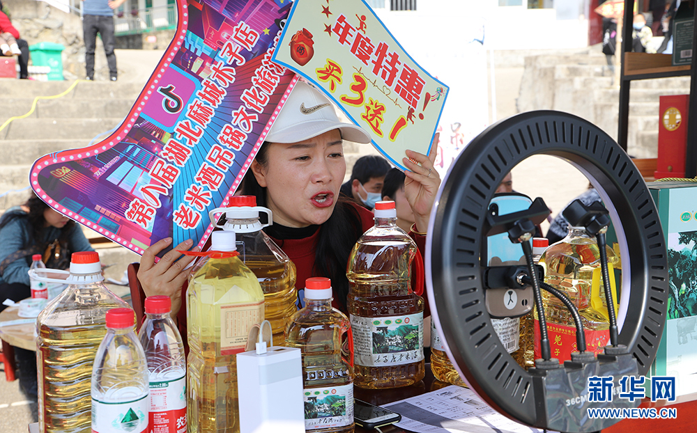 圖為黃岡市浠水縣“網(wǎng)紅”主播直播帶貨助農(nóng)銷(xiāo)售。新華網(wǎng)發(fā)