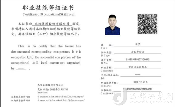 沈瑩,是東嶺冶煉公司的一名技術(shù)員,去年11月,他通過參加公司舉辦的新型學徒制培訓班,考取了“重冶火法冶煉工”中級工職業(yè)技能等級證書,不僅得到了政府1500元獎勵補貼,還在今年3月被公司從技術(shù)員提拔為車間技術(shù)副主任助理。