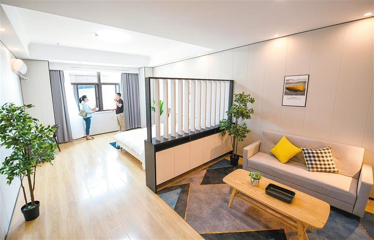 簡單介紹后,工作人員帶著劉女士參觀了位于6樓的樣板間。“真寬敞夠亮堂!”房門打開的一瞬間,劉女士忍不住感嘆道。這套房源有70多平方米,裝修簡約時尚、充滿年輕氣息,洗衣機、冰箱、空調(diào)等設(shè)施一應(yīng)俱全,家具陳列干凈整潔。“真沒想到條件這么好,房間內(nèi)的裝修和家具都是我喜歡的樣子。尤其是房間里有獨立的衛(wèi)浴,住起來會很方便。”劉女士說,自己對房源很滿意。參觀結(jié)束后,劉女士立即向工作人員詳細詢問租住流程。