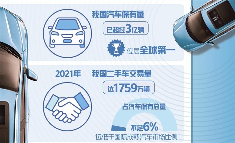 據(jù)了解,我國汽車保有量已超過3億輛,位居全球第一。汽車保有量達到一定程度后,二手車市場就開始放量,這是國際上汽車消費的普遍規(guī)律。2021年,我國二手車交易量達1759萬輛,不到汽車保有總量的6%,遠低于國際成熟汽車市場比例,二手車跨區(qū)域限遷、商品屬性不明確、經(jīng)銷業(yè)務受限多等問題,嚴重阻礙了二手車市場發(fā)展。