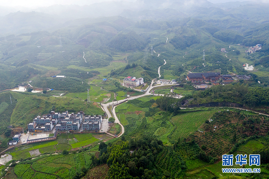 航拍環(huán)江毛南族自治縣思恩鎮(zhèn)陳雙村毛苗瑤片區(qū)。新華網(wǎng)發(fā)