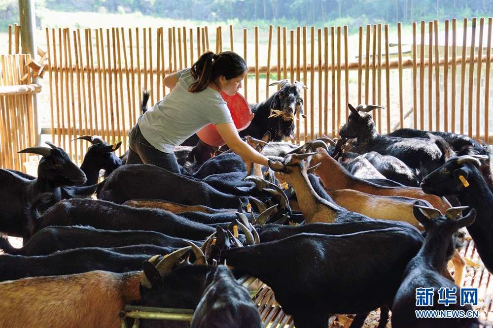 農戶正在給黑山羊投放飼料。新華網發(fā) 趙志岸 攝