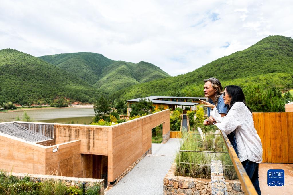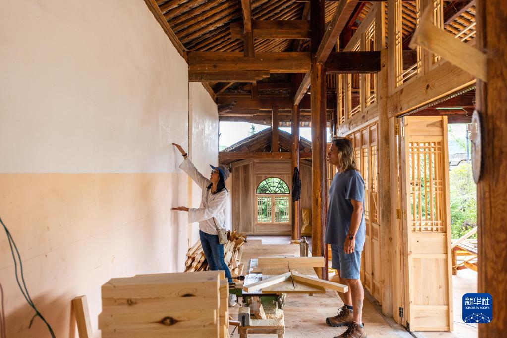 8月31日,林登和妻子瑾妮在沙溪鎮(zhèn)石龍村討論鄉(xiāng)村圖書館的設(shè)計。新華社記者 曹夢瑤 攝
