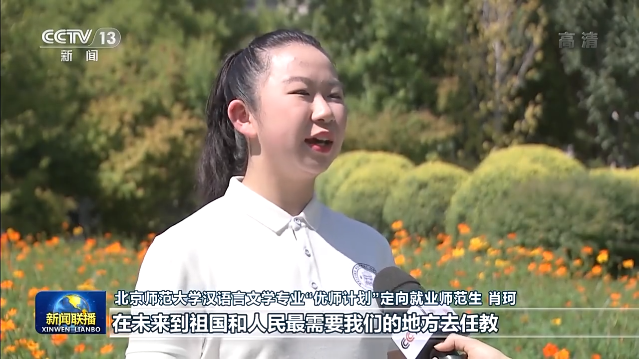 北京師范大學(xué)漢語言文學(xué)專業(yè)“優(yōu)師計劃”定向就業(yè)師范生 肖珂:總書記勉勵我們增長傳道授業(yè)解惑本領(lǐng),在未來到祖國和人民最需要我們的地方去任教。我定不負囑托,努力學(xué)習(xí),在畢業(yè)后回到我的家鄉(xiāng)。