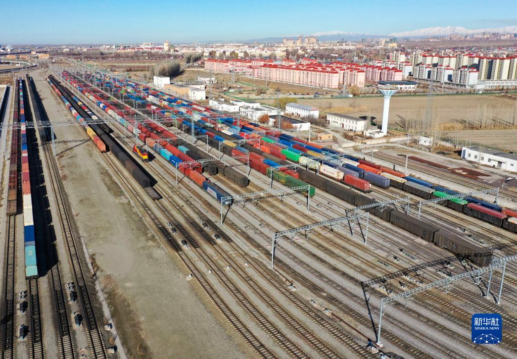 這是新疆霍爾果斯鐵路口岸(2022年3月31日攝,無人機照片)。新華社發(fā)(吳志恒 攝)