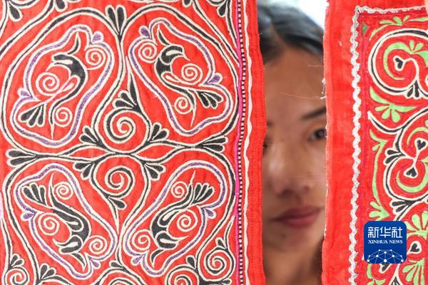 村口一家苗繡車間中,27歲的苗族姑娘楊文麗正帶著繡娘們飛針走線,趕制頗具苗族特色的旅游文創(chuàng)產品,一幅9米長的苗繡長卷即將完工。長卷畫面上,錯落有致的民居掩映在青山綠水間,身著少數(shù)民族服飾的村民們載歌載舞。