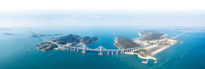 航拍連接福銀高速的平潭海峽公鐵大橋。福銀高速是國家高速公路網(wǎng)中一條承東啟西、貫通東南至西北的運輸大動脈。 |