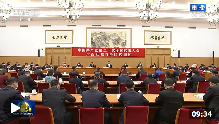 10月17日,在作完黨的二十大報告的第二天,總書記來到了廣西代表團。