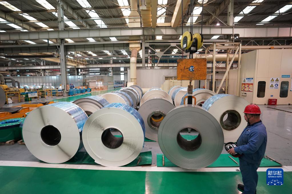 山西太原,中國(guó)寶武山西太鋼不銹鋼精密帶鋼有限公司車間,生產(chǎn)線上機(jī)器轟鳴,一卷卷薄如蟬翼、光滑如鏡的鋼材經(jīng)過(guò)壓延、清洗、包裝等步驟自動(dòng)化制成。