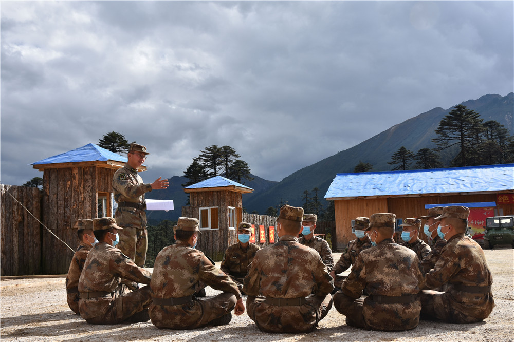 10月17日,西藏林芝軍分區(qū)“墨脫戍邊模范營”組織官兵學習黨的二十大報告。新華社發(fā)(游毅 攝)