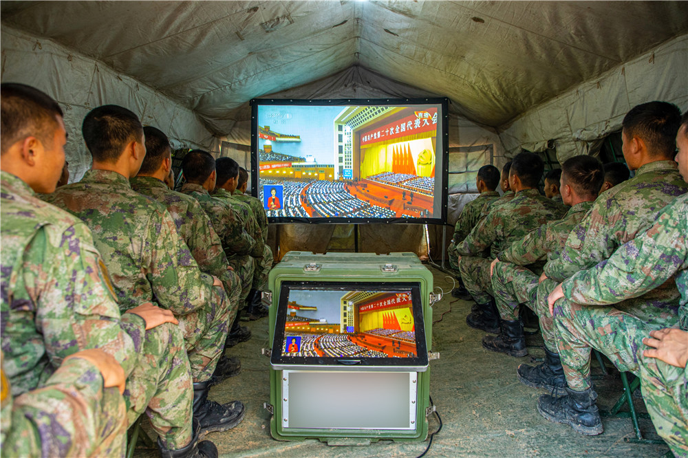 南部戰(zhàn)區(qū)海軍某守備部隊官兵集合在會議室,認真收看黨的二十大開幕并交流體會。在祖國西陲阿爾泰山腹地,新疆軍區(qū)紅山嘴邊防連官兵收看黨的二十大開幕后,立即展開討論。官兵們說:“身后是祖國和人民,我們一定要忠誠履行衛(wèi)國戍邊職責,深入推進實戰(zhàn)化軍事訓練,以過硬軍事能力筑牢邊疆安全穩(wěn)定屏障,努力為黨和人民再立新功。”
