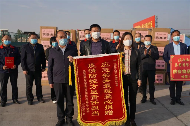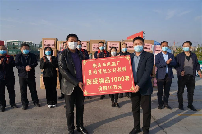 儀式上,西鳳集團公司向鳳翔區(qū)新冠疫情工作領(lǐng)導(dǎo)小組捐贈了價值10萬元的防疫物資1000套。