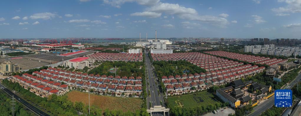 這是10月17日拍攝的江蘇江陰長(zhǎng)江村村貌(無人機(jī)照片)。新華社記者 季春鵬 攝