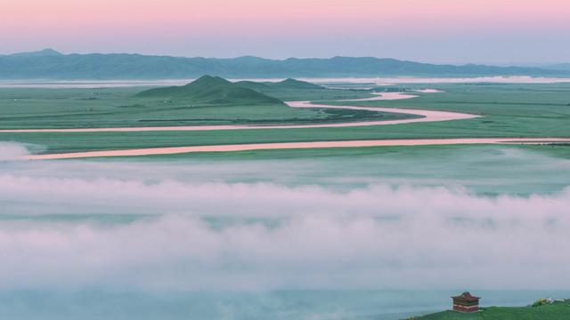 濕地河水充盈,草木豐美。時(shí)卷時(shí)舒的層云將陰影投在大自然鬼斧神工造就的草原上,成群的牛羊、鹿群以及盤旋高空的蒼鷹,還有珍稀動(dòng)物