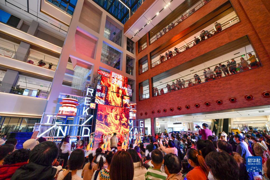 1月1日,市民在天津金茂匯商場內(nèi)觀看演出。新華社記者 孫凡越 攝