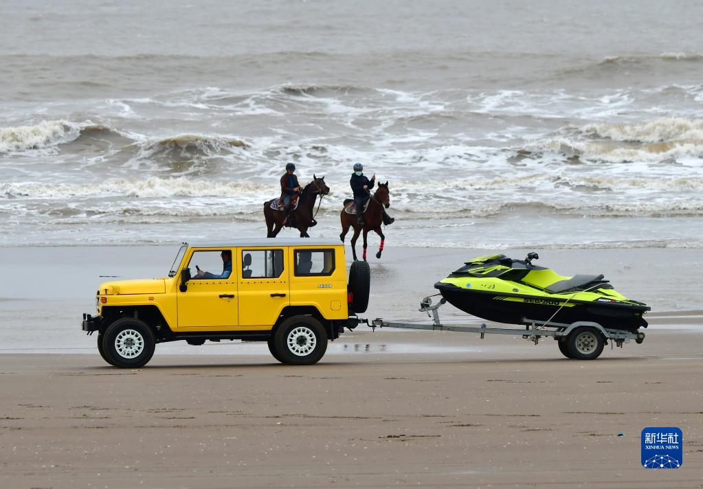 1月1日,馬術(shù)俱樂部成員在福建省福州市長樂區(qū)南澳海灘體驗海騎樂趣。新華社記者 魏培全 攝