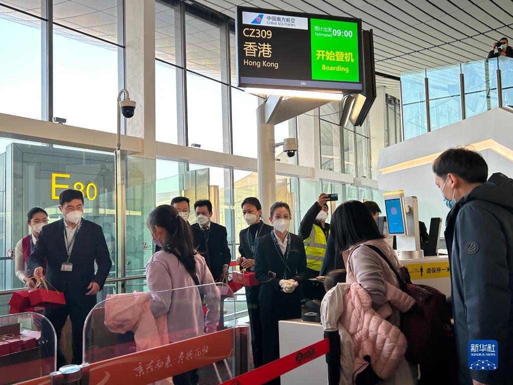 新華社北京1月17日電(記者羅鑫、吉寧)17日上午9時(shí)許,前往香港的CZ309航班搭乘100多名乘客騰空而起,中國(guó)“新國(guó)門(mén)”北京大興國(guó)際機(jī)場(chǎng)“暫停”近三年的國(guó)際及地區(qū)客運(yùn)航班“重啟”,國(guó)際及港澳臺(tái)地區(qū)客運(yùn)航線(xiàn)正式恢復(fù)。
