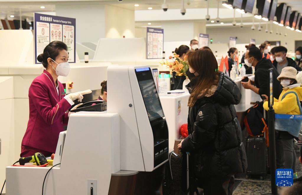 1月17日,在北京大興機(jī)場(chǎng),乘坐CZ309次北京大興飛往香港航班的旅客辦理值機(jī)。新華社記者 任超 攝