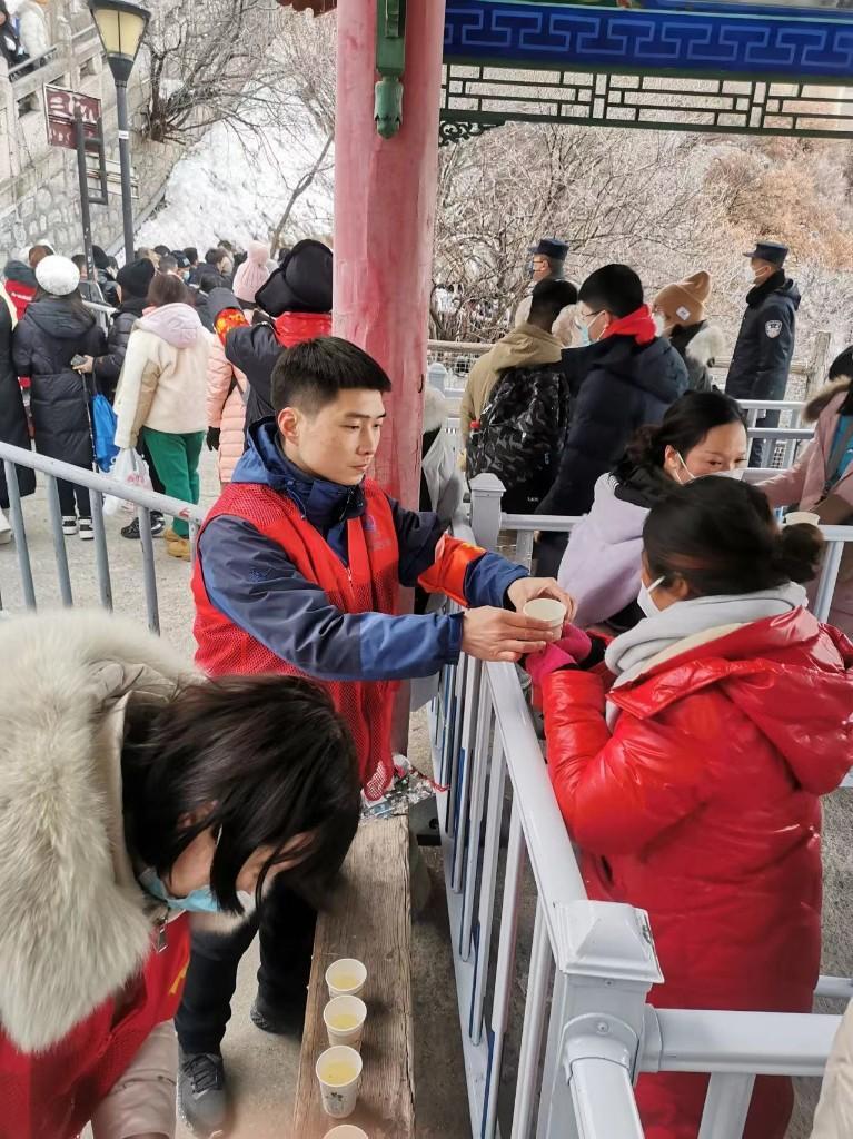 華山景區(qū)舉辦了“華山味·中國年‘冰雪+溫泉’福兔祈福華山過大年”新春迎賓系列活動,推出華山春節(jié)福兔祈福迎賓七大優(yōu)惠,為來華山的游客呈上一道旅游盛宴。華山腳下,最早的中國式搖滾——華陰老腔和華陰素鼓雙非物質(zhì)文化遺產(chǎn)表演,喜鬧新春。春節(jié)期間,華山景區(qū)客流大增,大年初三16:00,入園人數(shù)已接近景區(qū)最大日限流量1.5萬人次,西峰和北峰索道上下站都排起了長龍。當天氣溫突降,景區(qū)工作人員貼心地熬煮了熱氣騰騰的紅棗姜湯送到游客手中,游客紛紛贊嘆:“太暖心了。”