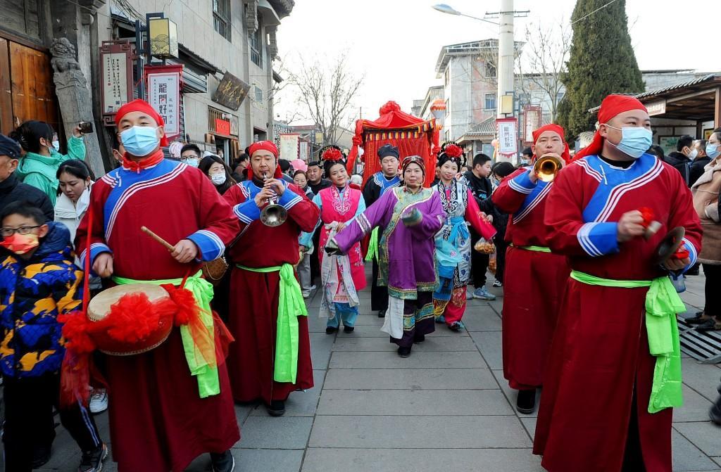 1月23日大年初二12:06,首批乘坐“韓城過大年”定制列車的400多名游客抵達韓城,走進史圣故里,感受古城悠久的文化底蘊和不一樣的韓城年味。游客們沿著新開辟的“古城環(huán)線游”線路,依次游覽古城三廟、民俗博物館,欣賞非遺展覽,在古城美食街品嘗當?shù)孛朗?。行走在古城,社火、秧歌、踩高蹺…… 各色非遺表演精彩紛呈,游客們紛紛拿出手機留下精彩的瞬間,抱起孩子共享這難得的歡樂時光,體驗這里濃濃的年味。