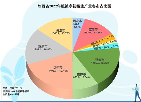 全省元生產(chǎn)力區(qū)域分析結(jié)果表明,在三大區(qū)域生態(tài)蛋糕越來越大的同時(shí),生態(tài)蛋糕的空間布局上與結(jié)構(gòu)發(fā)生變化,呈現(xiàn)黃河流域綠色崛起大趨勢(shì)。陜北榆林、延安兩市,生態(tài)空間8971.6萬畝,占全省的39.6%;關(guān)中西安、寶雞、咸陽、渭南、銅川五市生態(tài)空間4554.5萬畝,占全省的29.2%;陜南漢中、安康、商洛三市生態(tài)空間9136.2萬畝,占全省的40.2%。2022年,陜北兩市提供了2070.9萬噸植被凈初級(jí)生產(chǎn)量,占全省的26.9%,比2012年的1714.1萬噸增加313.8萬噸,增長18.3%,在全省份額上升了1.3個(gè)百分點(diǎn);關(guān)中五市提供了1775.1萬噸的植被凈初級(jí)生產(chǎn)量,占全省的23.1%,比2012年的1524.3萬噸250.8萬噸,增長16.4%,在全省份額上升了0.3個(gè)百分點(diǎn);陜南三市提供了3851.5萬噸植被凈初級(jí)生產(chǎn)量,占全省的50.0%,比2012年的3462.7萬噸增加388.8萬噸,增長11.2%,在全省份額下降了1.6個(gè)百分點(diǎn)。2012-2022年全省新增生態(tài)蛋糕996.4萬噸,陜北兩市貢獻(xiàn)31.5%,關(guān)中五市貢獻(xiàn)29.5%,陜南三市貢獻(xiàn)39.0%。陜北、關(guān)中提供的生態(tài)蛋糕占全省的份額已由2012年的48.4%提高到2022年的50.0%。