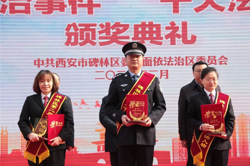 2月14日上午,西安市碑林區(qū)委全面依法治區(qū)委員會主辦的碑林區(qū)第二屆“十大法治事件”“十大法治人物”頒獎典禮在鐘樓廣場前隆重舉行。西安市公安局碑林分局成功偵辦的特大網絡賭博案以及公安碑林分局太白路派出所所長丁保健分別榮獲“十大法治事件”和“十大法治人物”。此外,作為依法治區(qū)委員會成員單位,公安碑林分局在現場通過設置、案例解讀、現場互動解答的方式進行了反詐以及普法宣傳活動。