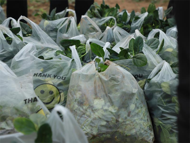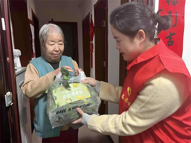 志愿者們來(lái)到田間助農(nóng)采摘菠菜和香菜,大家齊心協(xié)力、干勁十足,不一會(huì)兒一批新鮮蔬菜便裝袋完成。隨后志愿者們將“愛(ài)心蔬菜包”送往翠華南路社區(qū)困難老人手中,以實(shí)際行動(dòng)傳遞愛(ài)心,踐行央企責(zé)任。
