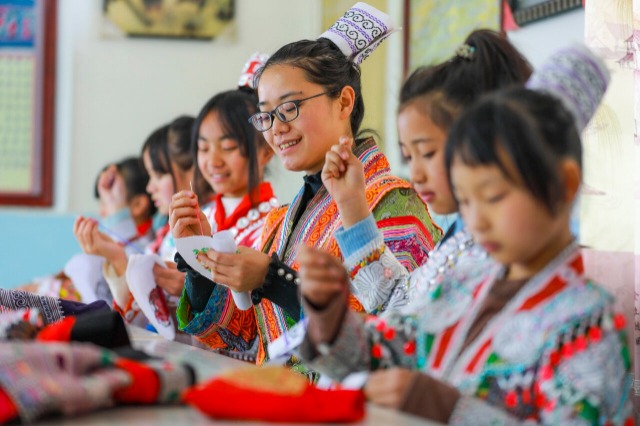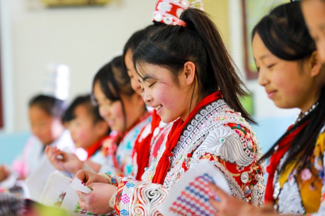 近年來,貴州省黔西市新仁苗族鄉(xiāng)折溪小學(xué)積極推動(dòng)優(yōu)秀非遺文化進(jìn)課堂,選任學(xué)校精通刺繡、蠟畫、蠟染的教師指導(dǎo)學(xué)生學(xué)習(xí),讓苗族孩子們“零距離”接觸非遺技藝,弘揚(yáng)和傳承民族優(yōu)秀傳統(tǒng)文化。中國教育報(bào)-中國教育新聞網(wǎng)通訊員 周訓(xùn)超 攝