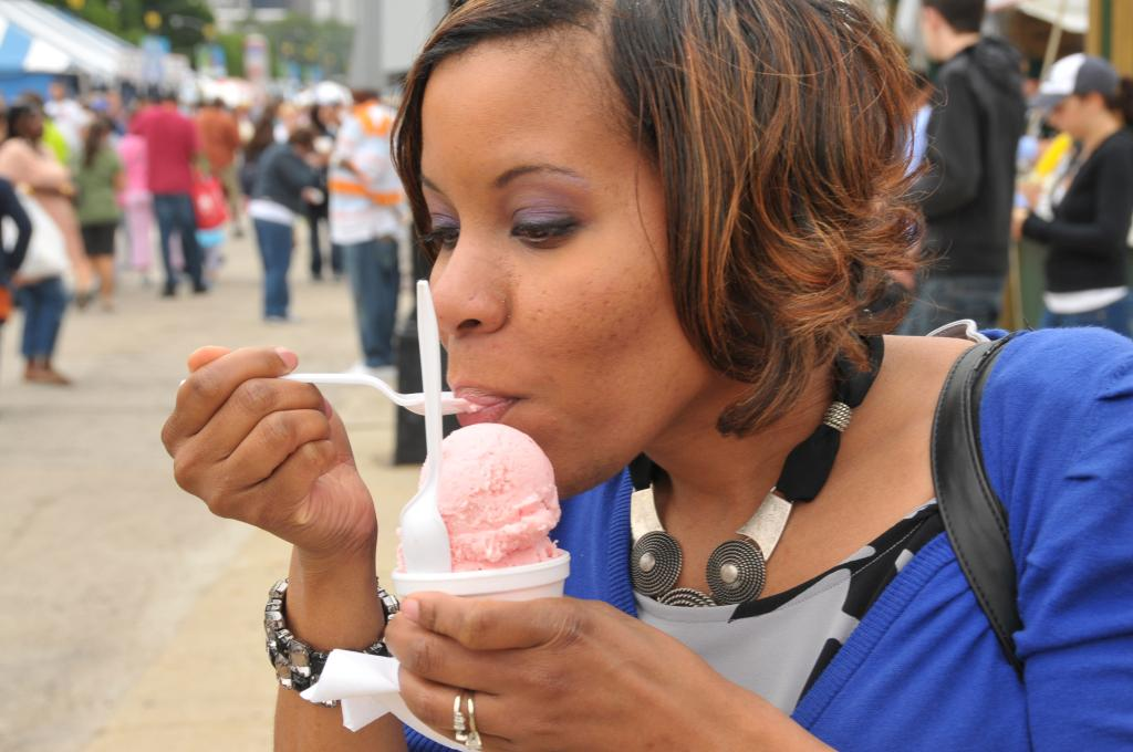 2011年6月24日,在美國芝加哥美食節(jié)上,一名女子品嘗冰激凌。新華社發(fā)(蔣新彤攝)