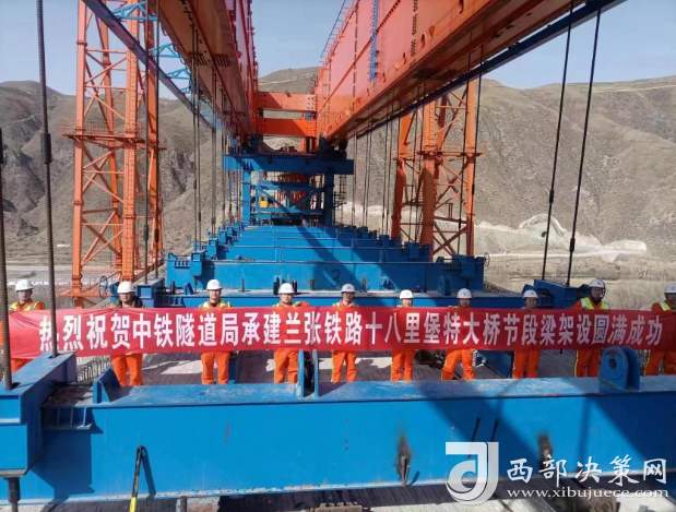 西部決策網(wǎng)訊(記者帥華鋒 杜杰 通訊員 黃貴彬 董桓民 攝影/喬志偉 呂清華)3月28日下午15時28分,由中國鐵路蘭州局集團有限公司蘭州工程建設指揮部負責建設管理,中鐵隧道局承建的蘭張三四線鐵路十八里堡特大橋最后一段節(jié)段梁拼接完成,標志著蘭張鐵路全線唯一一座采用節(jié)段預制拼裝簡支箱梁的特大橋順利貫通,為后續(xù)架梁與整體道床施工提供了基礎條件。
