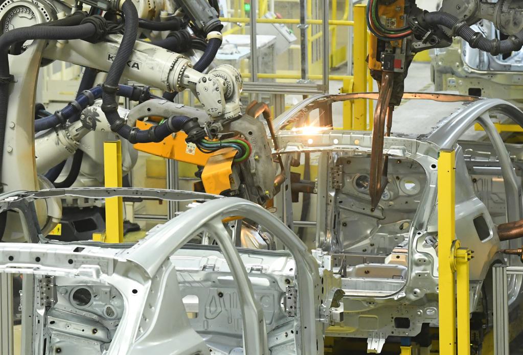 4月11日,智能機器人在領克汽車寧波余姚工廠焊裝車間工作。新華社記者翁忻旸 攝