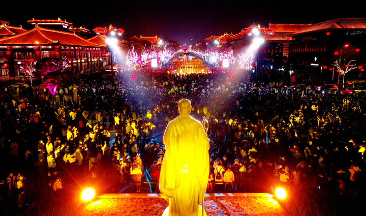 西安大唐不夜城步行街區(qū)的玄奘廣場(chǎng)。新華社記者 劉瀟 攝