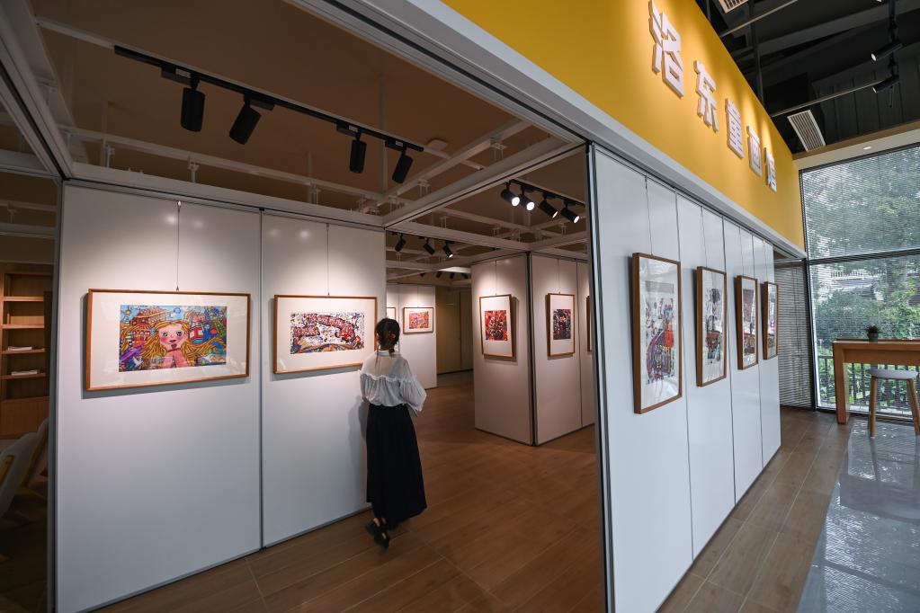 6月15日,游客在嘉興市秀洲區(qū)新塍鎮(zhèn)洛東村參觀洛東童畫(huà)館。新華社記者 徐昱 攝